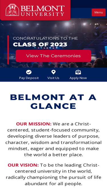 92%Experience the transformative impact of Belmont University as we advance educational excellence and empower students through Christ-centered initiatives and philanthropic opportunities. Find out how you can join us in our mission to become an institution that champions radical flourishing for all.