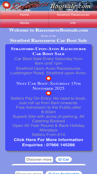 100%stratford racecourse car boot sale, every saturday 8am to 1pm. sellers from 8am, no need to book. free admission to the public.