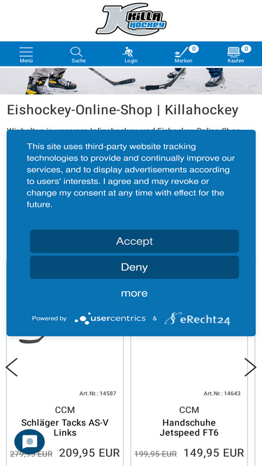 83%verkauf von hochqualitativ hockey-ausrüstung, bekleidung und accessoires, nicht nur für die spieler.