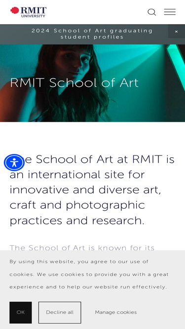 76%The School of Art at RMIT is an international site for innovative and diverse art, craft and photographic practices and research.