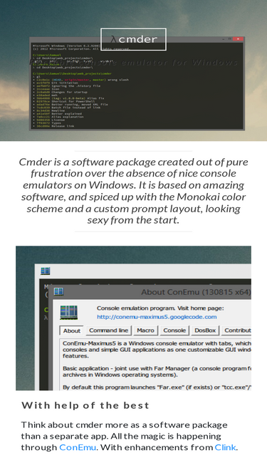 100%cmder is software package that provides great console experience even on windows