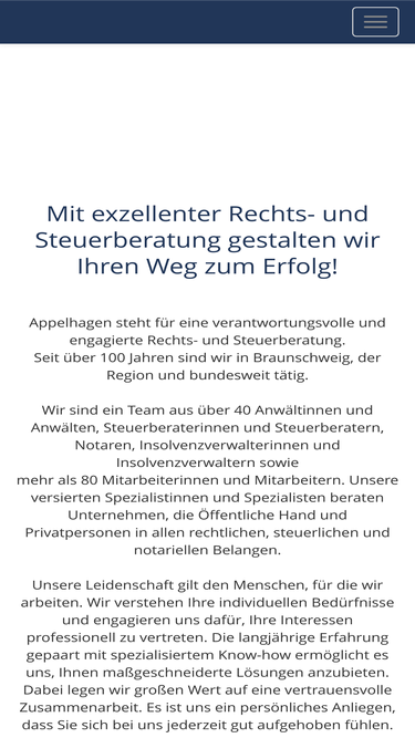 92%appelhagen ist eine führende, renommierte wirtschaftssozietät, die seit über 100 jahren in braunschweig, der region und bundesweit tätig ist.