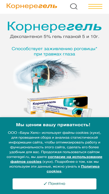 90%Корнерегель гель глазной 5 и 10 г, декспантенол 5%. ✅ Препарат способствует заживлению роговицы глаза при травмах. Инструкция по применению геля, информация, где купить гель в аптеках | Производитель Bausch+Lomb