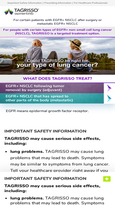 81%learn about tagrisso® (osimertinib), a targeted treatment option for people with certain types of egfr+ non-small cell lung cancer (nsclc). talk to your doctor to see if tagrisso is right for you.