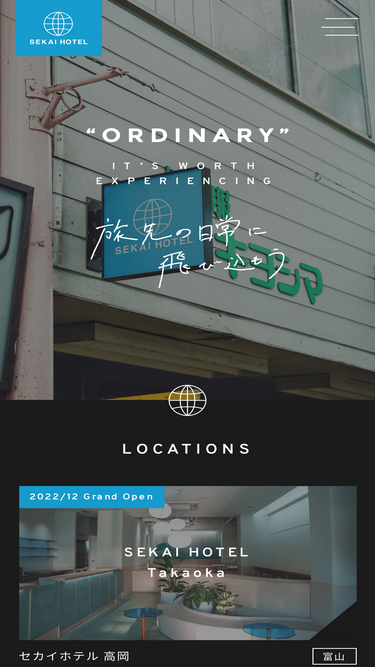 65%SEKAI HOTEL(セカイホテル)は旅先の日常(=ORDINARY)が体験できる、まちごとホテル。旅先の生活や文化を暮らすように楽しみ、新しい出逢いが「あなたの知らないまち」を「あなたのまち」にする。さあ、旅先の日常に飛び込もう。