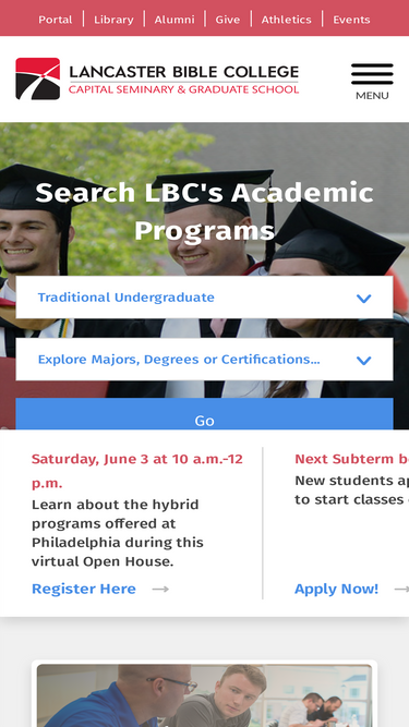 Lancaster Bible College is an accredited Bible college and seminary, which offers associate to doctoral degrees delivered through on-campus and online courses. The college seeks to educate Christian students to think and live a biblical worldview and to proclaim Christ by serving Him in the Church and society.