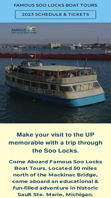 100%Make your visit to the UP memorable with a trip through the Soo Locks. Come Aboard Famous Soo Locks Boat Tours. Located 50 miles north of the Mackinac Bridge, come aboard an educational & fun-filled adventure in historic Sault Ste. Marie, Michigan.
