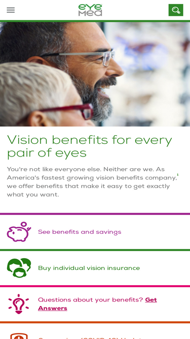 73%Affordable vision coverage for eye exams, eyeglasses and contact lenses. Save on employee vision benefits, and individual and family vision insurance plans.