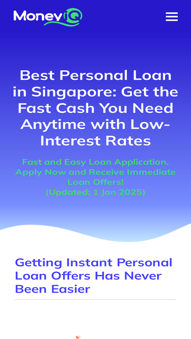 Find instantly for the best match of personal loan offers, business loans, wedding loans, payday loans, renovation loans, and debt consolidation loans in Singapore. Personalised loan offers in under a minute at MoneyIQ®. Stay updated with the list of licensed moneylenders and the best financial solutions such as credit cards and insurance. Only from trusted and reliable Premium local business listing in Singapore.