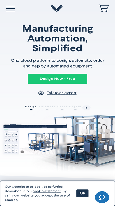 100%One cloud platform to design, automate, order, and deploy manufacturing equipment from your web browser