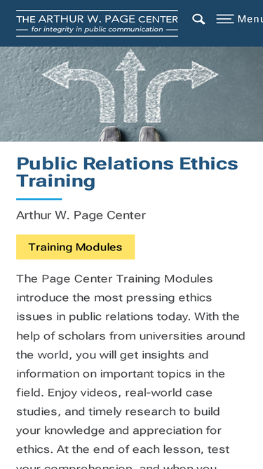 76%the page center is strengthening the role of ethics education in communications classrooms. we offer 12 free online modules on a range of ethics topics in public relations.