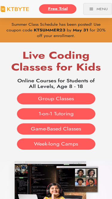 82%fun and engaging online coding and robotics classes for kids ages 8-18. comprehensive curriculum from beginner to college level.