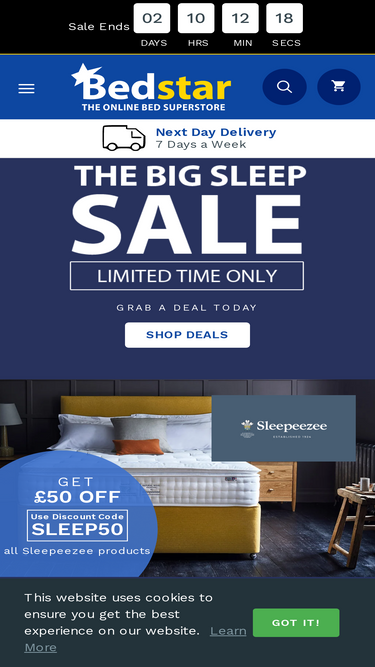 77%next-day delivery on beds, mattresses, bed frames, and more. bed sale now on with big discounts on sleepeezee, sientnight, and sealy with finance options available.