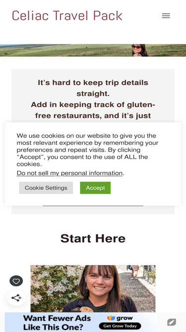 100%Celiac Travel Pack Big Adventures.No Gluten. It's hard to keep trip details straight. Add in keeping track of gluten-free restaurants, and it's just overwhelming. Here's a tool to keep you organized and stress-free.Plus, a real example of how you can use it. Start Here Gluten Free Travel Africa Europe North America Is gluten-free life making travel feel impossible? I've been there, too! If you don't want your gluten-free life to keep you from travel and adventure, you’re in the right place. Whether you're dreaming of hiking through national parks or eating your way through Italy, this site is full of