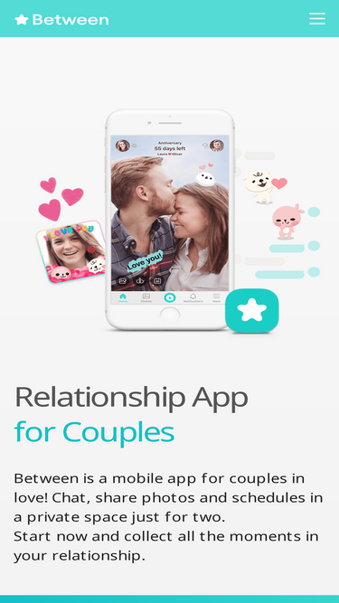 Between is a private space where you can share each moment only with that special someone. Create, share, and remember all your moments with each other. Get started now!