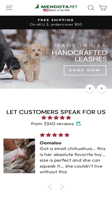 87%Mendota Pet has been crafting high-quality, made in the USA dog leashes, collars, hunting equipment, training tools, skincare products, and dog show gear. Handcrafted in Saint Paul, Minnesota, our products are built to last—we guarantee them for the life of your pet.