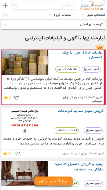 100%نیازمندیها ، آگهی و تبلیغات اینترنتی در حوزه صنعت ، خدمات ساختمانی ، املاک ، خدمات مسافرتی ، استخدام ، کشاورزی ، بازرگانی ، پزشکی ، وسایل نقلیه ، کامپیوتر و موبایل