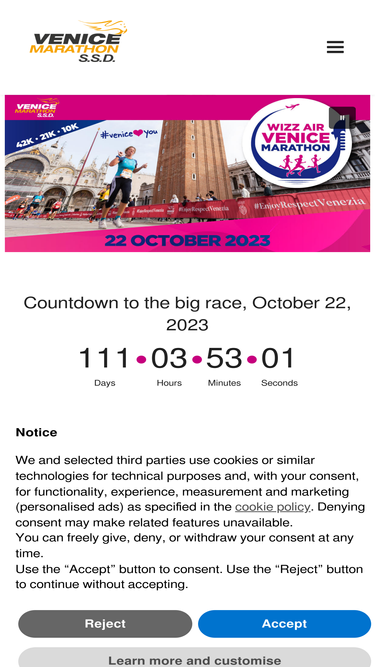 100%venicemarathon is an international marathon. it carries the iaaf bronze label. the traditional distance is of 42.195 kilometers, and it is the most classic and fascinating discipline of athletics.