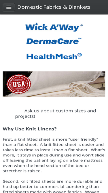 100%wick the wet away, stretcher sheets, domestic fabrics, domestic industries, moisture wicking blankets