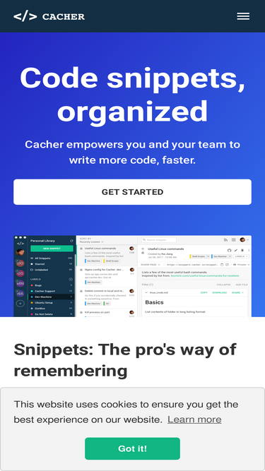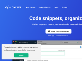 92%Privacy policy for Cacher. Cacher is the code snippet organizer that empowers professional developers and their teams to get more coding done, faster.
