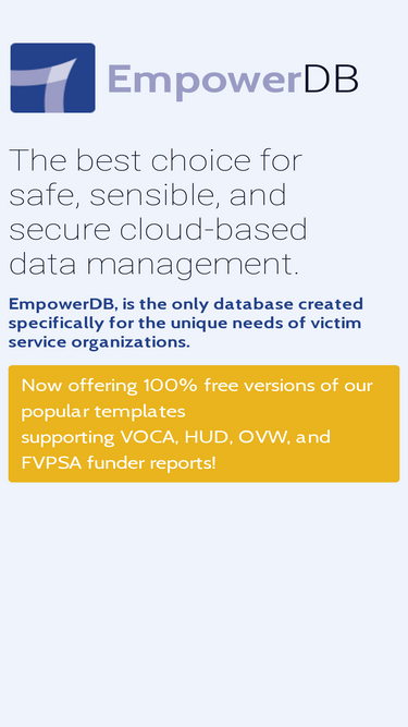 76%the best choice for safe, sensible, and secure cloud-based data management. empowerdb, is the only database created specifically for the unique needs of victim service organizations.