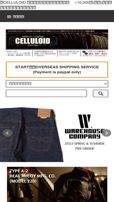 88%celluloid(セルロイド)はリアルマッコイズ・フェローズ・フルカウント・ウエアハウス・サムライジーンズ・クッシュマン・デラックスウエア・ウエス・ウエスコ・ホワイツブーツ・ワイツーレザー・ファーストアローズ正規取扱店.