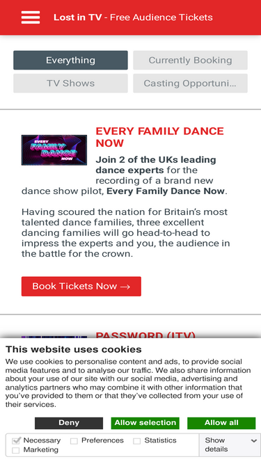 94%free tickets to your favourite television and radio shows from lost in tv