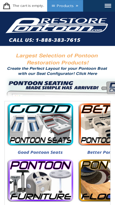 52%family owned and operated supplier of pontoon boat seats, boat flooring, pontoon bimini tops, pontoon boat ladders, pontoon trailers, pontoon fencing, marine hardware, glue and more! restorepontoon.com has everything you need!