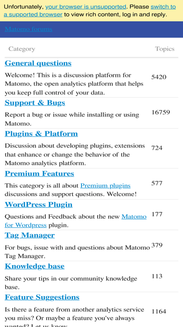 51%Get help using Matomo analytics platform and discuss web and mobile analytics in our Community Forums