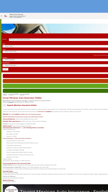 66%The fastest way to buy Mexican auto insurance. We offer great rates on Mexican insurance for cars, trucks, SUV's, motorcycles, RV's, UTVs. Call us now to get covered. 1-800-524-2252