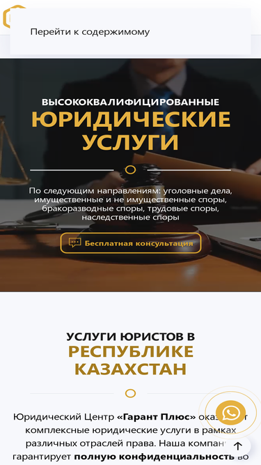 92%юридический центр «гарант+» предлагает услуги юриста (адвоката) по следующим направлениям: уголовные дела, имущественные и не имущественные споры, бракоразводные споры, трудовые споры, наследственные споры в г. астана. также оказываем юридические услуги физическим лицам и компаниям.