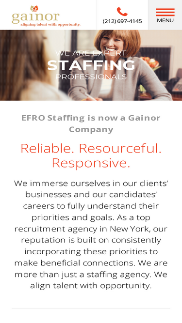 Gainor is a leading staffing and recruiting agency in the New York City area dedicated to aligning talent with opportunity.