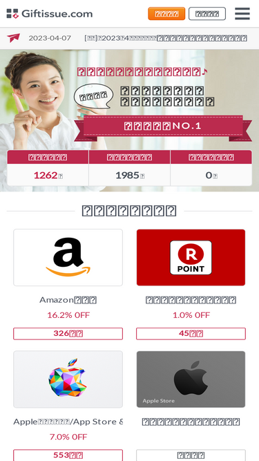 100%Amazonギフト券(アマゾンギフト券)、Apple、AppleGift、GooglePlayの現時点の出品の一覧です。Amazonギフト券(アマゾンギフト券)、Apple、AppleGift、GooglePlayそれぞれの額面や種類などが一覧で表示されます。
