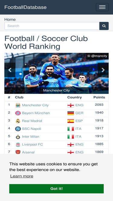 92%a football / soccer club world ranking based on the elo rating system. scores, standings and statistics about clubs as well as international and domestic leagues / competitions.