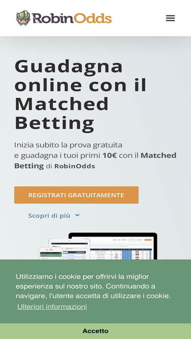 96%RobinOdds è la miglior piattaforma di Matched Betting in Italia: Scopri gratuitamente cos'è il Matched Betting e inizia a guadagnare con noi!
