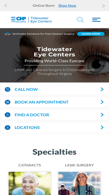 85%The skilled Ophthalmologists at Tidewater Eye Centers, in Portsmouth, Virginia Beach and Chesapeake, VA offer advanced cataract surgery, LASIK and general eye care.