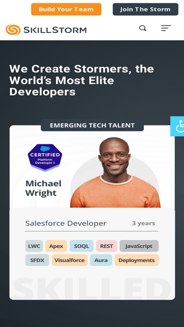 92%SkillStorm hires, trains, & deploys college grads at F500 tech companies as developers. We pay you to get certified in Pega, Salesforce, AWS, ServiceNow & more.