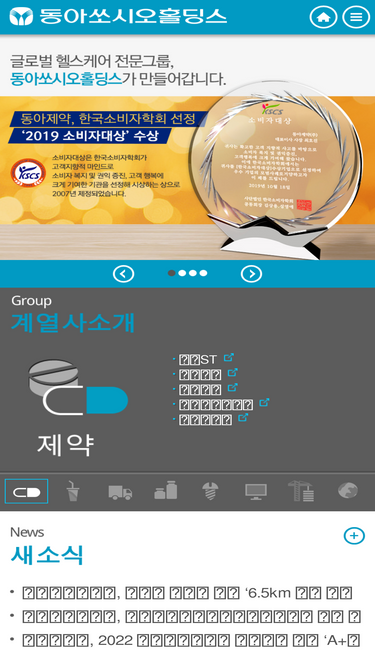 54%의약품 생산업체, 펜잘, 프리페민, 이튼큐, 속청 등 제품 소개, 연구개발 안내 등 소식 제공