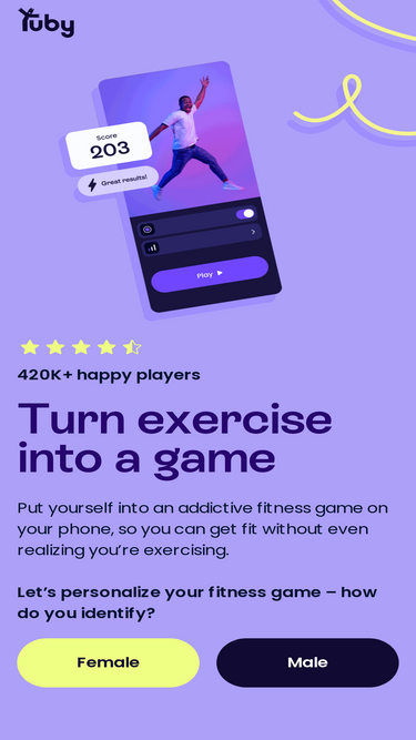 89%No more boring, repetitive exercises! Get fitter with this revolutionary motion-based app. Complete a short quiz to get your personalized workouts and start playing.