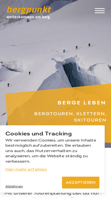 94%Antworten auf häufige Fragen zu bergpunkt: Touren, Kurse, Zimmer, Ausrüstung, Durchführung, Wetter, Umbuchung und Mietmaterial. Klar, transparent und kompakt – für deine optimale Vorbereitung.