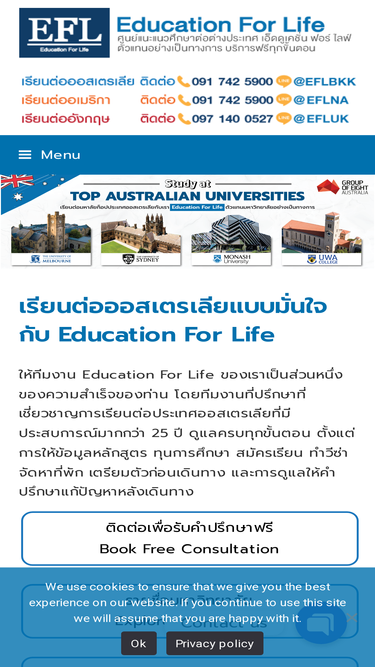 เรียนต่อออสเตรเลีย Monash University กับ Education For Life ตัวแทนมหาวิทยาลัยอย่างเป็นทางการ บริการฟรีทุกขั้นตอน Tel: 091-742-5900 Line ID: @EFLBKK