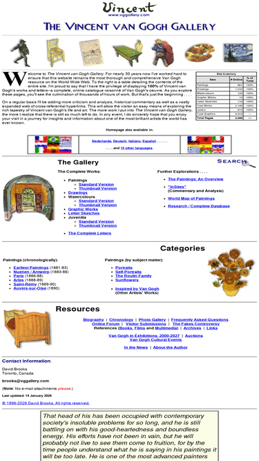 87%Welcome to the Van Gogh Gallery, the definitive reference for the life and work of Vincent van Gogh. Get an in-depth look at Van Gogh's biography, paintings, and more.