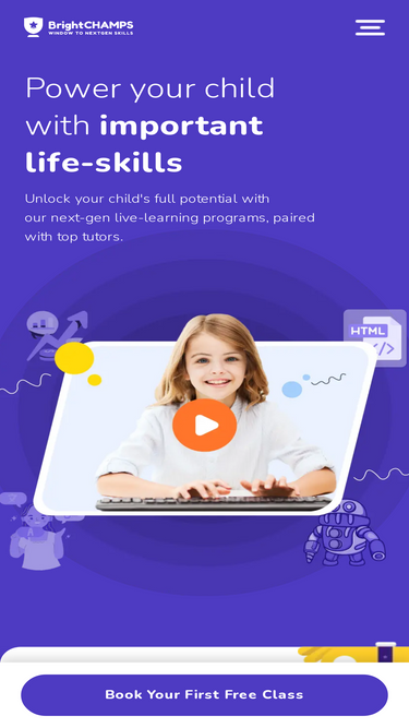 93%BrightCHAMPS offers fun, interactive online classes for kids in coding, robotics, AI, math & finance. Expert-led, future-ready learning!