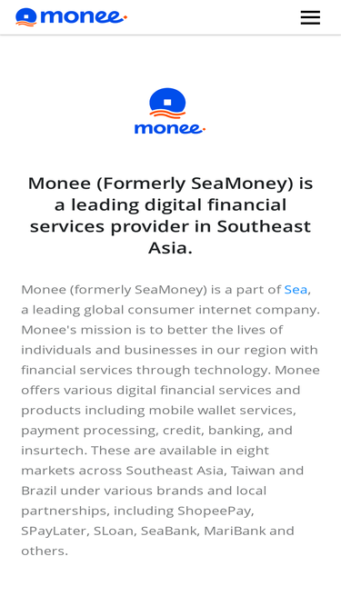 49%Monee, formerly SeaMoney, is a leading digital payments and financial services provider in Southeast Asia, including ShopeePay, SPayLater, and more.