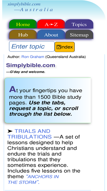 82%leading bible study resource by ron graham provided by churches of christ in australia. our motto: simply bible, simply christians.