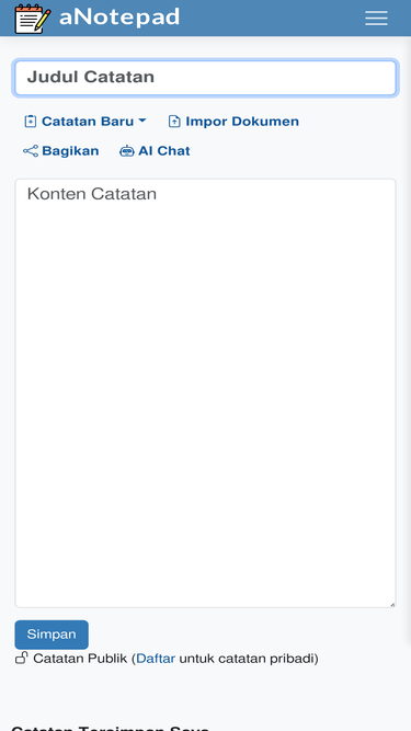 84%anotepad.com adalah notepad online sehari-hari anda. anda dapat membuat catatan dan berbagi catatan secara online tanpa harus login. anda dapat menggunakan editor teks kaya dan mengunduh catatan anda sebagai dokumen pdf atau word. yang terbaik dari semuanya - anotepad adalah notepad online yang cepat, bersih, dan mudah digunakan.