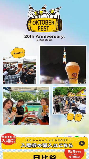 85%オクトーバーフェスト日本公式サイトです。2025年は4月~5月で東京のお台場&芝公園で開催、9月~10月で東京の芝公園&豊洲で開催。このサイトでは、毎年行われるオクトーバーフェスト東京会場の最新情報を更新していきます。今後の開催をお楽しみに!