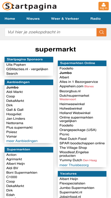 57%de supermarkt startpagina geeft een overzicht van supermarkten met producten, aanbiedingen en acties
