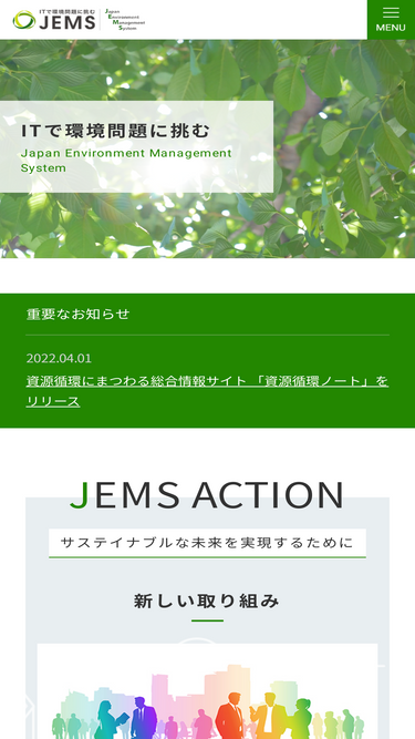 86%株式会社JEMSは、動脈産業から静脈産業に至るまでのプロセスをITとアウトソーシングでトータルにカバー。すべての企業の「環境に責任を持った事業活動」に貢献し、地球環境と経済活動が共生できる持続的な社会を目指します。