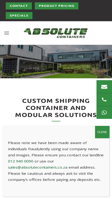 View the product prices for container conversions and park homes for Absolute Containers. Easily request a quote for exactly what you need!